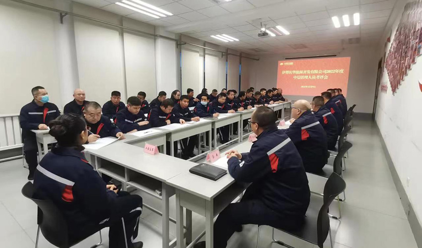 中國慶華新疆消息(秦曉春)12月9日,伊犁慶華能源開發有限公司2022年度中層管理人員述職及技術人員考評大會在辦公樓培訓室舉行。礦領導班子、各部門正副職及技術人員共50人參加考評。會議由公司經理助理兼綜合辦公室主任楊生倉主持。